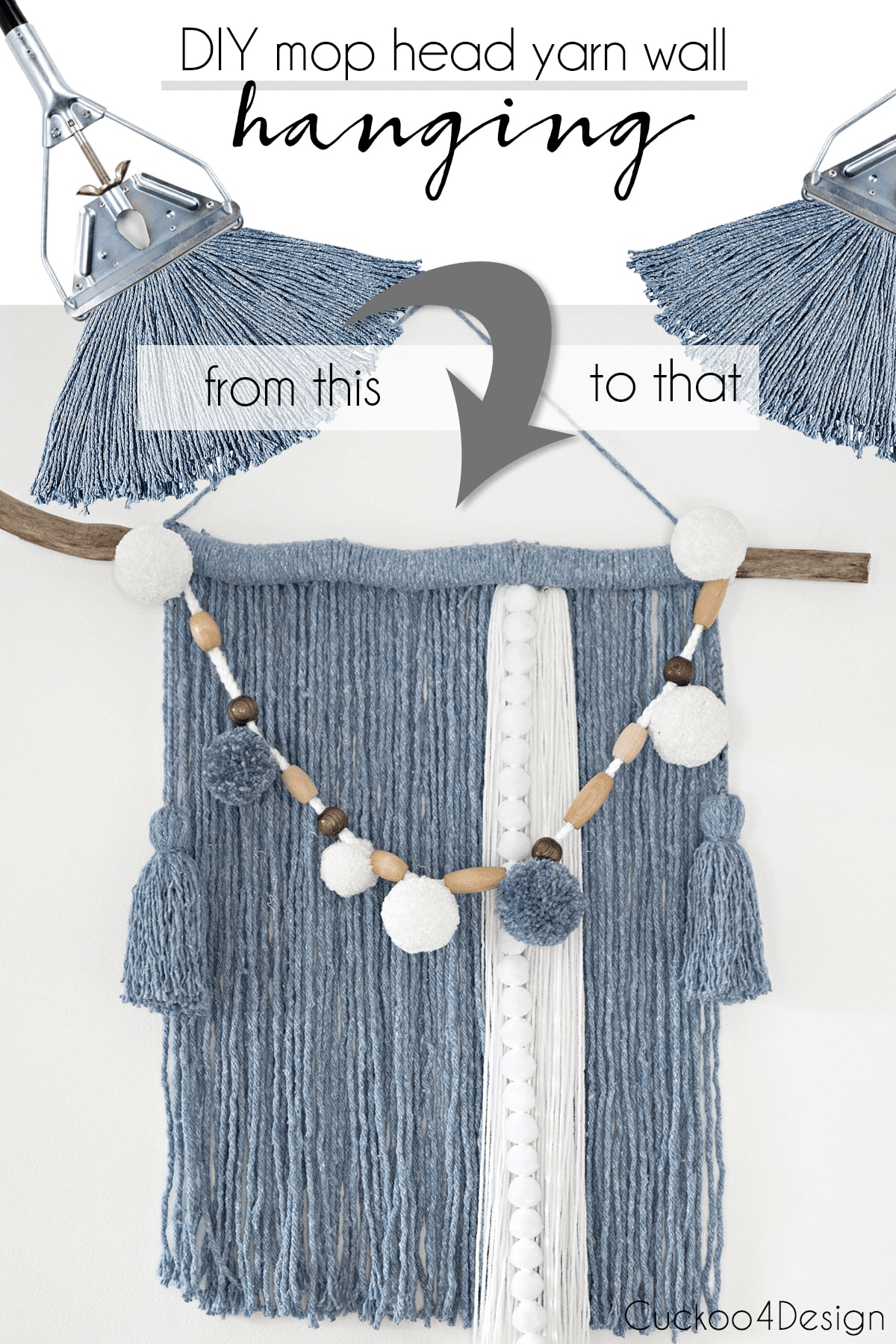 Creatieve wandversiering met een mopkop Ontdek hoe je een prachtige macramé-achtige wandhanger kunt maken met een onverwacht materiaal: een mopkop. Een leuke en betaalbare manier om vintage-geïnspireerde wandkunst te creëren. https://cuckoo4design.com/mop-head-yarn-wall-hanging