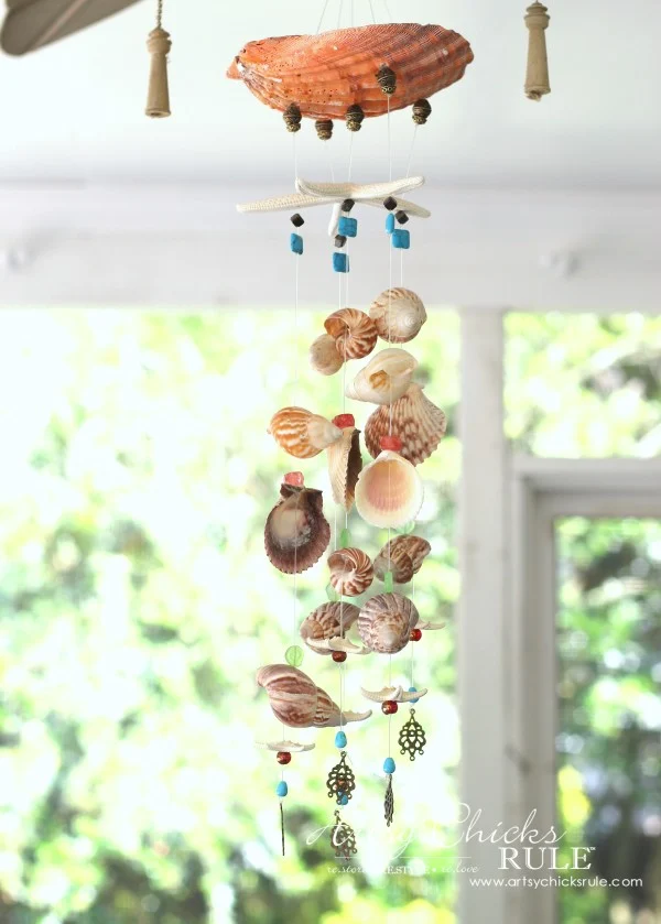 Schelpen verzamelen is een kleine passie die in onze familie zit. Elke zomer worden gallonzakken tot de rand gevuld met deze kleine schatten die langs de kustlijnen zijn aangespoeld. We hebben er zoveel dat het een beetje belachelijk is geworden en ik heb gezworen om ze goed te gebruiken. Ik heb schelpen wandkunst, zeesterren jute banieren, zanddollar plafondmedaillon kunst gemaakt, dus waarom niet iets meer 3D en kinetisch maken? Laten we Zeebellen (ook wel Schelpen Windgong) maken!