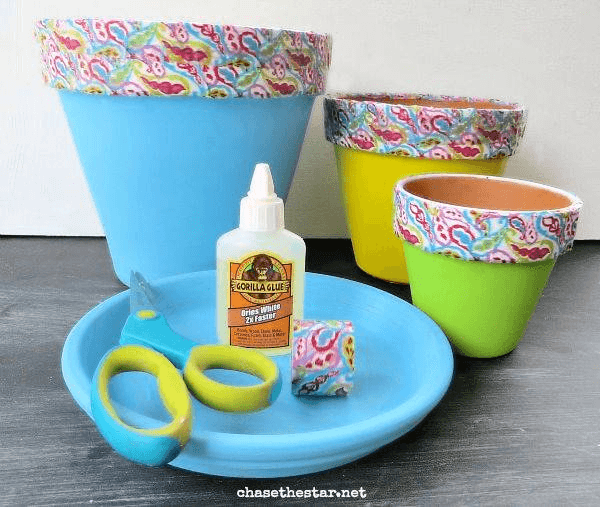 Uiteindelijk heb ik een laag Mod Podge over de potten aangebracht om ze te beschermen en ze een mooie afwerking te geven. Ik wist dat ze er zo super leuk uitzagen! Maar ja, je weet hoe het gaat, ik wil altijd meer met mijn… DIY crafts. Voor mij geldt: meer is (meestal) minder! Daarom heb ik besloten om de volgende stap te zetten!